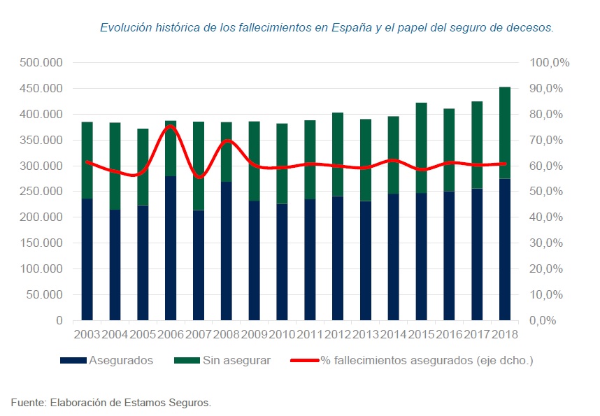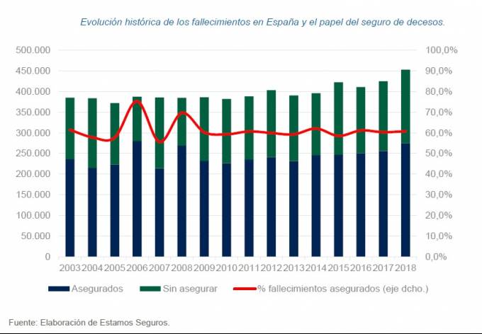 El 61% de los fallecimientos ocurridos en España en 2018 estuvieron cubiertos por el seguro de Decesos. Es decir, el sector se hizo cargo del entierro de 275.160 personas según datos del Informe Estamos Seguros 2018 elaborado por Unespa.