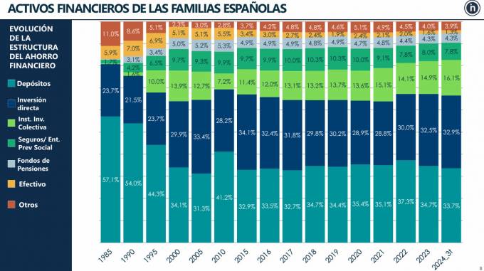 De esta cantidad de ahorro total el seguro aglutina el 7,8%, una cifra inferior al 8% del cierre de 2023 y se iguala a los datos de 2022. Lejos quedan porcentajes del 10% alcanzados en 2019 ó 2020.
