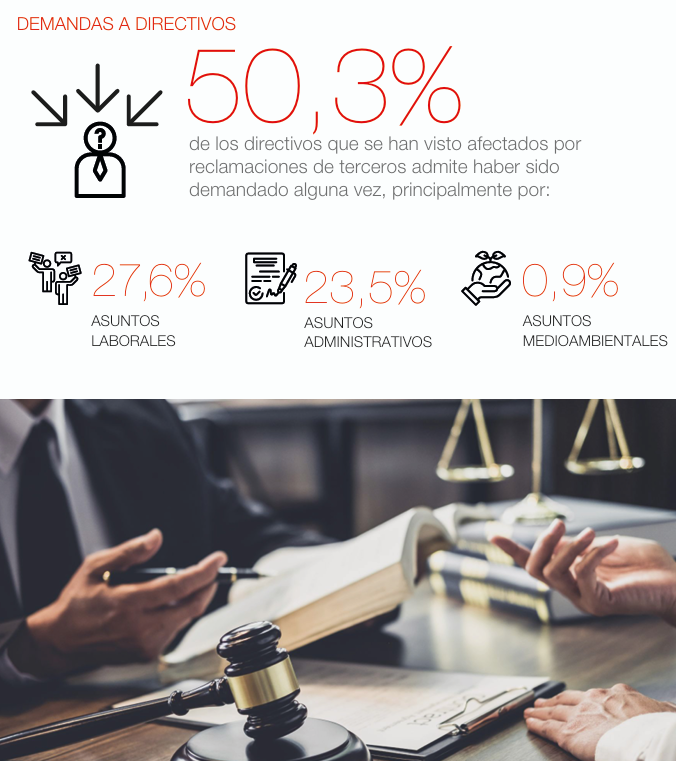A pesar de este porcentaje, indica la asegurador que "la concienciación de los directivos y su protección frente a las diferentes situaciones de riesgos a través de un seguro específico está aumentando". En este sentido, casi el 37% de los directivos que no cuentan con un seguro para ellos muestra su interés para su contratación. En el informe se aprecia que más de la mitad de los directivos (50,3%) afirma haberse visto afectado por reclamaciones de terceros. El motivo más frecuente son los asuntos