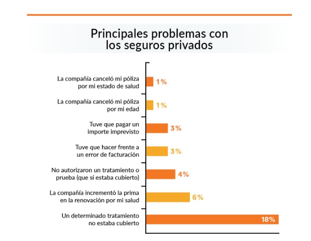 Con todo, ninguna se libra de problemas. El 18% de los encuestados declaran que alguno de los tratamientos que solicitaron no estaba cubierto por la póliza. Además, el 6% de los encuestados destaca que su aseguradora le incrementó inesperadamente la prima como consecuencia de algún problema de salud, una circunstancia que, salvo excepciones contemplan la mayoría de las compañías. Un 4% reclama que se les rechazó algún tratamiento o prueba que a priori estaba cubierto por la póliza y todavía un 1% alega que se les ha cancelado la póliza por motivos de edad.