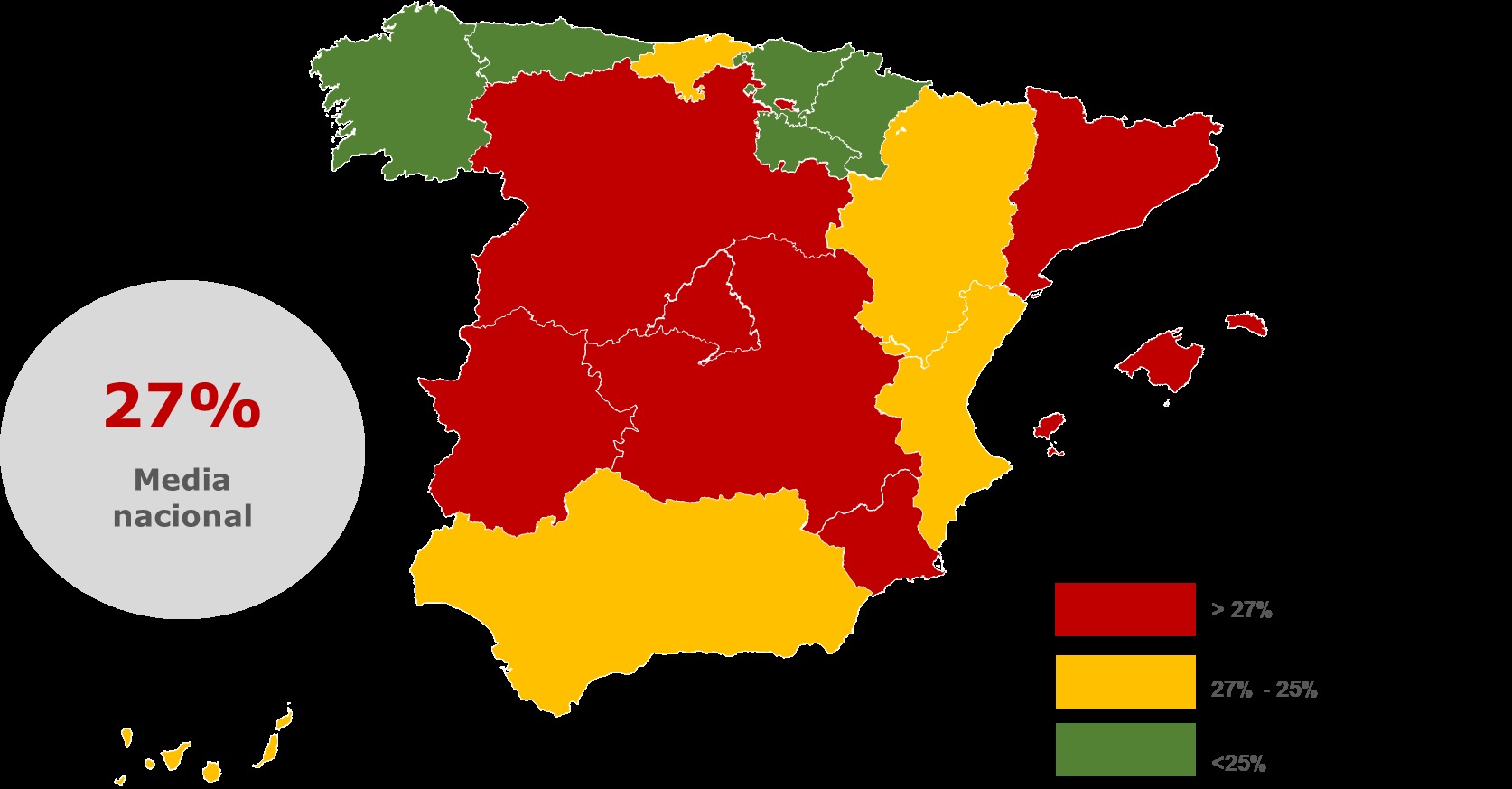 Otra regiones como Asturias, País Vasco y Navarra son las que reflejan menos incidentes en sus viviendas con porcentajes del 20%, 18% y 17%, respectivamente.