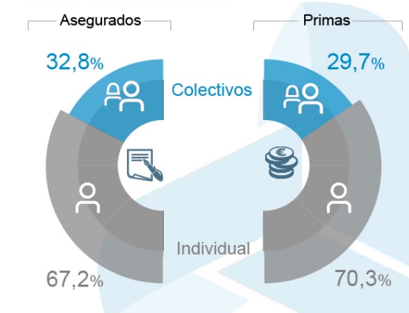 El crecimiento en colectivos es algo superior (5,25%) pero el número de primas supone el 29,7% del mercado y el de asegurados el 32,8%.