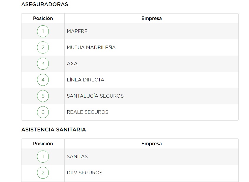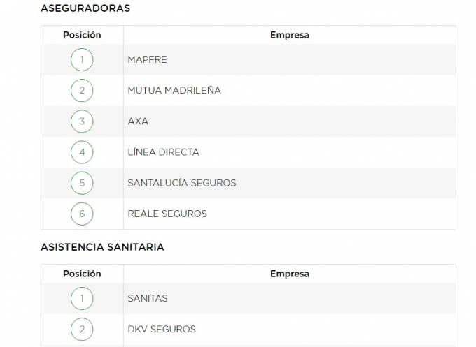Santalucía y Reale salen este año de los 100 primeros puestos pero se mantienen en el ranking por sectores.