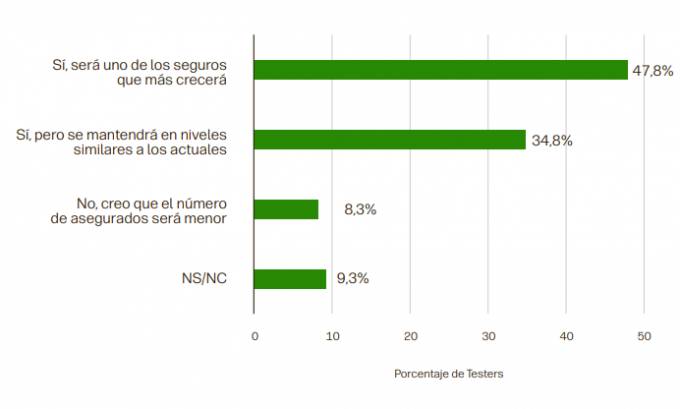 Mientras, desde la perspectiva de la red mediada, los agentes y corredores que comercializan este tipo de pólizas se muestran aún más confiados con sus perspectivas: más del 90% de ellos creen que su negocio crecerá en los próximos años. Profundizando aún más en esta cuestión, el informe expone como un 45,8% de los mediadores encuestados estiman que crecerá notablemente y un 44,8% consideran que lo hará de forma moderada.