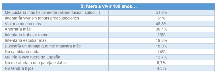 Llama la atención en el estudio, que los españoles, si supiesen que vivirían más de 100 años solo 3 de cada 10 pensarían en el ahorro.