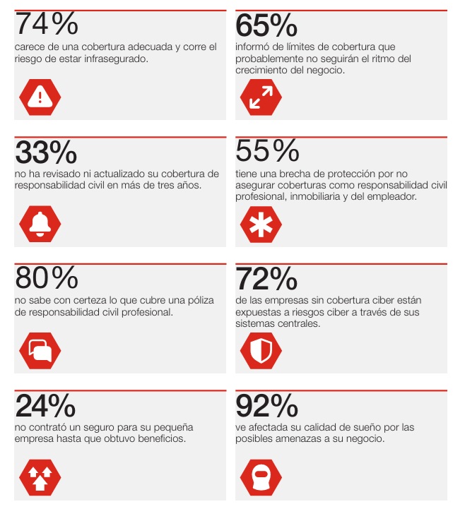 El informe revela que un alto porcentaje de estas organizaciones carece de coberturas esenciales para su actividad, como la Responsabilidad General y Profesional o el Ciberseguro, a pesar de necesitarlo por la naturaleza de su negocio, su sector o bien la forma en la que interactúan con sus clientes.
