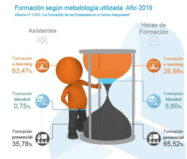 Un 96,78% del personal de las aseguradoras recibió formación en 2019 siendo la formación e-learning la que ha atraído a más asistentes, el 63,47%.