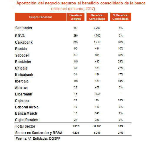 El negocio asegurador aporta un 10% de los resultados de la banca