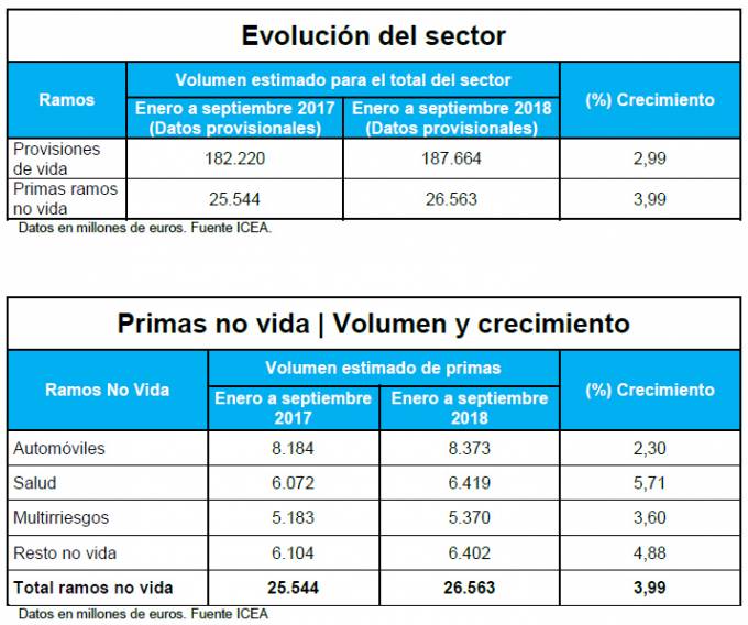 El ahorro gestionado en productos de seguro de Vida, medido a través de las provisiones técnicas, alcanzó los 187.664 millones a cierre de septiembre. Este importe supone un incremento interanual del 2,99%, de acuerdo con las estimaciones de ICEA. Respecto a las primas, el descenso del 0,99% se debe a la mala evolución del negocio de Ahorro, con un volumen estimado de primas de 17.978 millones y un descenso del 3,27%. Mientras, Vida Riesgo continúa su ascenso con un crecimiento del 11,94% hasta los 3.669 millones de euros.