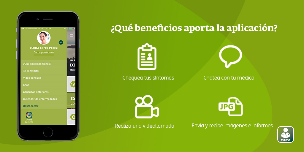 DKV lanza Digital Doctor, una app con la que sus clientes podrán tener gratis un "médico siempre en su bolsillo". La aplicación gracias al "chequeador de síntomas" realiza una evaluación previa, según algoritmos clínicos. Así, el doctor digital puede ofrecer información al instante sobre la eventual enfermedad, su tipología y gravedad. Para ello, tiene en cuenta los antecedentes y síntomas del usuario.
