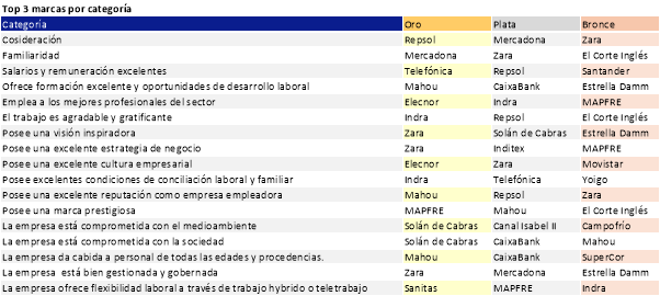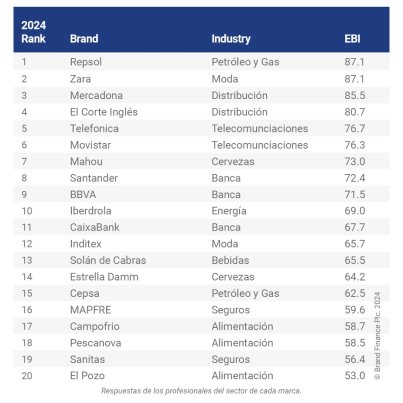 En esta clasificación, Repsol y Zara han sido identificadas como las marcas empleadoras con mayor puntuación en España, ambas con un 87,1. Y el podio lo completa Mercadona (85,5).