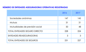 El número de aseguradoras inscritas y operativas en el registro de la DGSFP se redujo un 1,7% en el último año: al cierre de 2016 su número ascendía a 231 mientras que a finales de 2017 había 227.