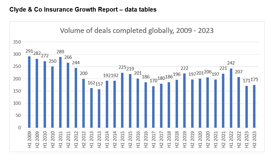 Según ha explicado Peter Hodgins, socio de Clyde & Co, "a medida que la economía global continúa sintiendo los impactos de la alta inflación, ha sido difícil encontrar financiación para transacciones para muchas empresas de seguros. Mientras tanto, dado que se espera que más de la mitad de la población mundial sea convocada a las urnas en 2024, así como una serie de conflictos regionales en aumento, los mayores riesgos geopolíticos se han convertido en una preocupación persistente. Ante esta incertidumbre del mercado, los negociadores han permanecido en modo de esperar y ver qué pasa, lo que tuvo un impacto negativo en el volumen general de transacciones en 2023".