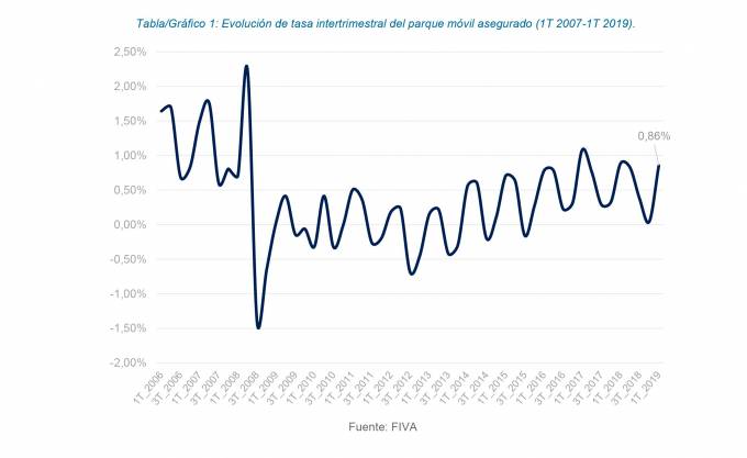 "El parque asegurado también ha anotado una tendencia alcista, pero más pausada, entre el primer y el segundo trimestre. El periodo formado por los meses de abril, mayo y junio de este año presenta una tasa de crecimiento del 0,86% respecto del trimestre formado por los meses enero, febrero y marzo. El aumento ha sido de 267.913 vehículos netos", detalla.