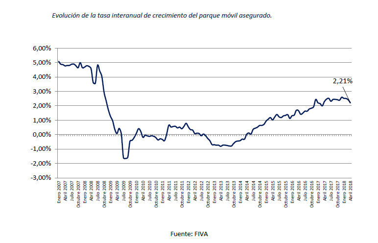 El número de vehículos asegurados aumenta un 2,21% a cierre de abril