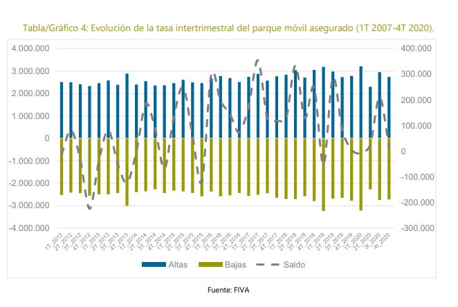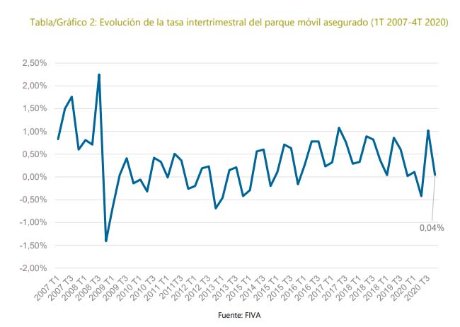 El número de vehículos asegurados aumenta un 0,76% en 2020 con un mal final de año