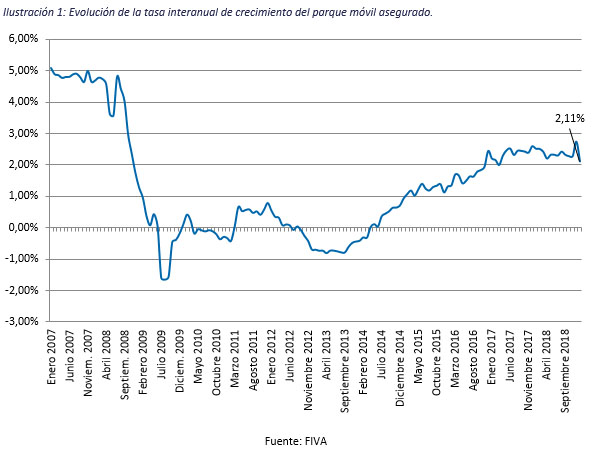 El número de vehículos asegurados creció un 2,11% en 2018