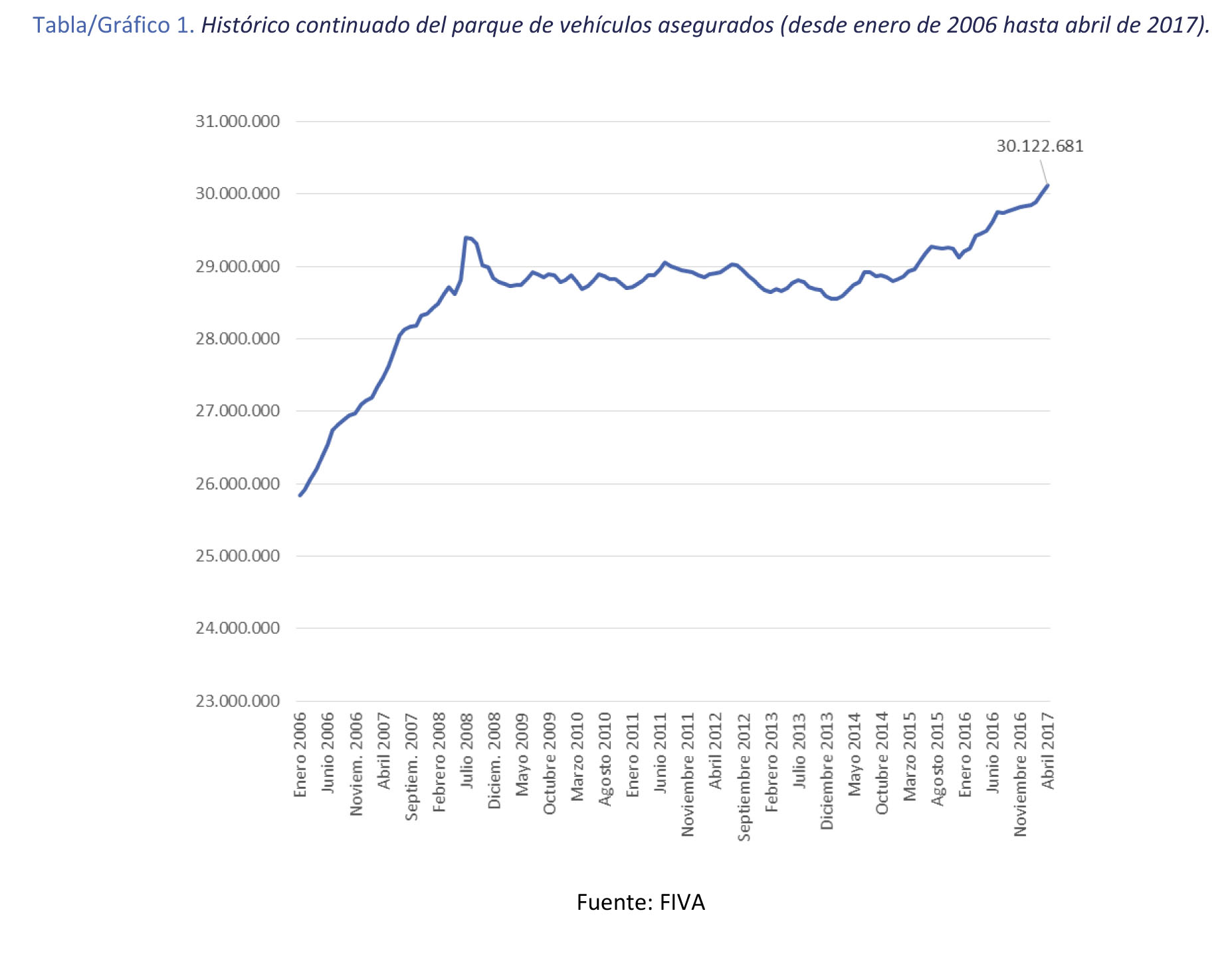 El número de vehículos asegurados en España ha ascendido a 30.122.681 unidades en abril, lo que significa un incremento del 2,3% en relación al mismo periodo del ejercicio anterior, según los datos del Fichero Informativo de Vehículos Asegurados (FIVA) facilitados por Unespa. Este crecimiento se traduce en 676.181 vehículos a motor más que hace un año.