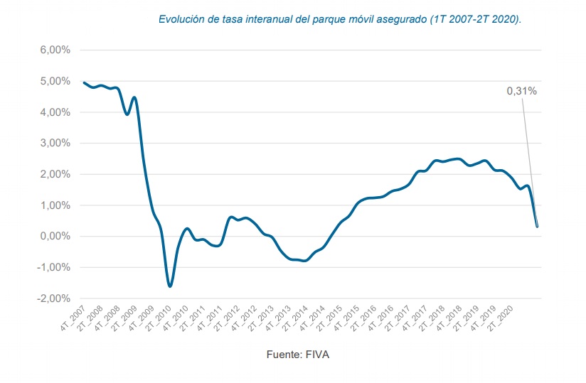 El número de vehículos asegurados se situó en 31.681.368 unidades a cierre del segundo trimestre del año. Supone un crecimiento anual de apenas el 0,31% (98.959 unidades) según los datos del Fichero Informativo de Vehículos Asegurados (FIVA). La crisis sanitaria de la Covid-19 y el confinamiento decretado para contener esta enfermedad han paralizado los procesos de altas y bajas de vehículos.