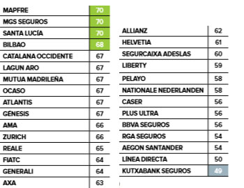 Como cada año, la OCU ha encuestado a sus socios para medir el grado de satisfacción que tienen con las aseguradoras y, en concreto, con los seguros de Hogar. Según ha publicado en su revista, las entidades mejor valoradas son Mapfre, MGS y Santalucía, cuyas pólizas de Hogar han sido valoradas con un total de 70 puntos. De una lista de 29 entidades, el cuarto lugar lo ocupa Seguros Bilbao, con 68 puntos, y el quinto puesto lo comparten Catalana Occidente, Lagun Aro, Mutua Madrileña, Ocaso, Atlantis y Génesis (67 puntos). La clasificación la cierran Kutxabank Seguros (49 puntos) y Línea Directa (50 puntos).