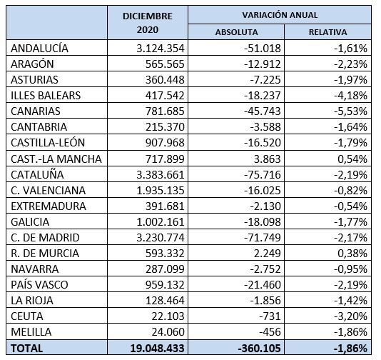 La pandemia por el Covid-19 ha acabado con la recuperación laboral en la que estaba inmersa España desde 2014. Finalmente, el año 2020 ha finalizado con 19.048.433 afiliados a la seguridad social, 360.105 trabajadores afiliados menos que en diciembre de 2019, según los datos publicados por el Ministerio de Inclusión, Seguridad Social y Migraciones. No obstante, corregida de estacionalidad y efecto calendario, la afiliación se sitúa en 19.066.444 trabajadores.