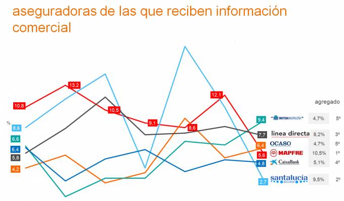 En cuanto a las aseguradoras más buscadas por los particulares la primera es Mapfre (12,5%), seguida de Línea Directa (8,7%), AXA (8,3%) y Allianz (8,1%).