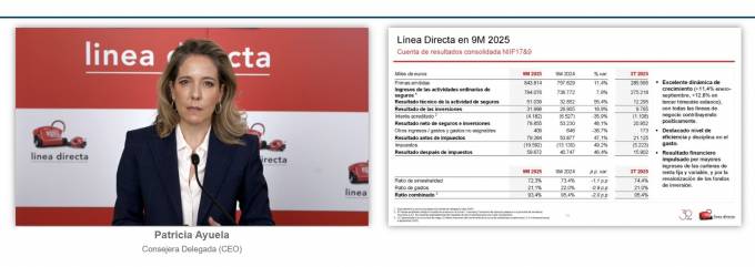 Como es habitual, la consejera delegada de Línea Directa analizó las principales claves del periodo. "Estos 9 primeros meses se caracterizan en nuestra compañía por un incremento sólido del beneficio y una alta rentabilidad, fruto, por un lado, de un fuerte crecimiento en ingresos y en clientes, y, por otro lado, por una alta rentabilidad con un sólido ratio combinado", explicó.