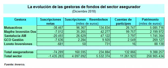 El patrimonio de las aseguradoras en fondos de inversión se redujo un 4,5% en 2018