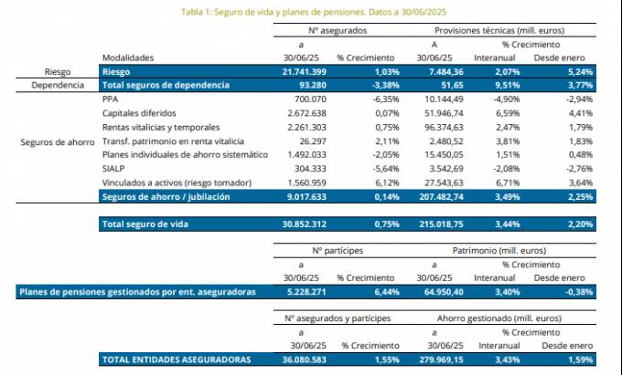 Hasta aquí lo relacionado con el patrimonio. Si se analiza la evolución de los clientes, el primer semestre de 2025 ha finalizado con un total de 36.080.583 asegurados y partícipes, un 1,55% más que en el mismo periodo del ejercicio anterior. De todos ellos, 30.852.312 son asegurados de Vida (+0,75%), aportando Vida Riesgo la mayor parte de ellos: 21.741.399 (+1,03%). Por su parte, Vida Ahorro se queda con 9.017.633 asegurados (+0,14%), aportando 4 productos gran parte de ellos: Capitales diferidos, 2.672.638 (+0,07%); Rentas vitalicias y temporales, 2.261.303 (+0,75%); unit linked, 1.560.959 (+6,12%); PIAS, 1.492.033 (-2,05%). El resto proceden de PPA, 700.070 (-6,35%); Sialp, 304.333 (-5,64%); y Transferencia del patrimonio en renta vitalicia, 26.297 (+2,11%).
