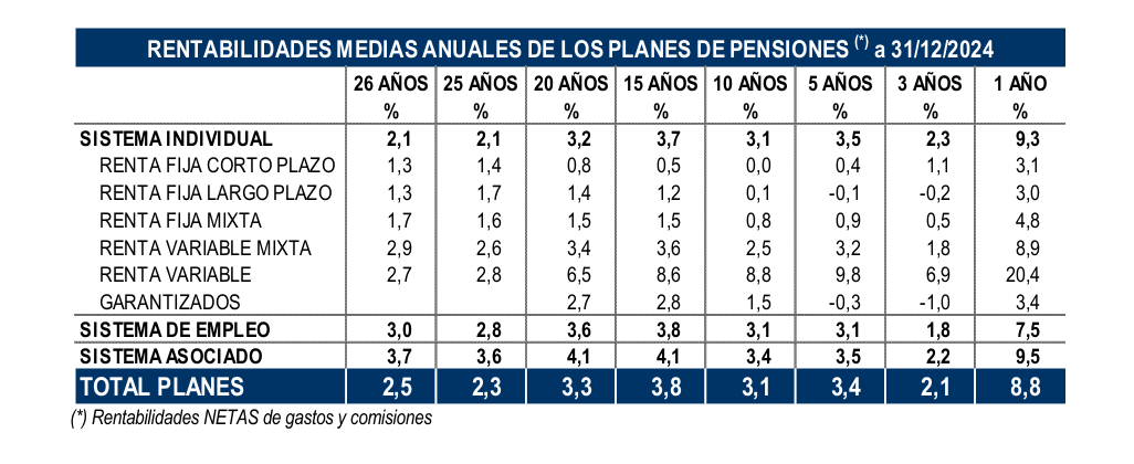 El patrimonio de los Planes de Pensiones creció un 7,7% en 2024