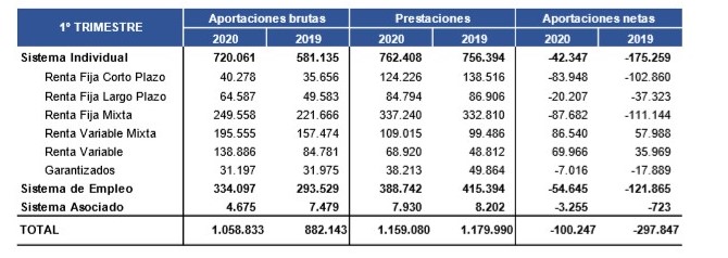 Desglosados estos datos por sistemas, el individual ha cerrado con un patrimonio de 72.335 millones de euros (-3,6%) y casi 7,5 millones de cuentas; el de empleo, con un volumen de activos de 33.130 millones (-4,7%) y casi 2 millones de cuentas de partícipes; y el asociado, con 767 millones de euros en activos (-10,9%) y 55.562 cuentas.