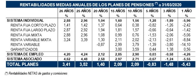 En un entorno de gran volatilidad en los mercados, los Planes de Pensiones han experimentado una corrección de valor en sus carteras, situándose la rentabilidad media en el plazo de 1 año en el -5,4%. En el sistema individual es aún más pronunciada esta corrección, siendo del 5,96%, empujada por la renta variable (-14,10%) y la renta variable mixta (-8,84%). También es negativa la rentabilidad a 3 y 5 años.