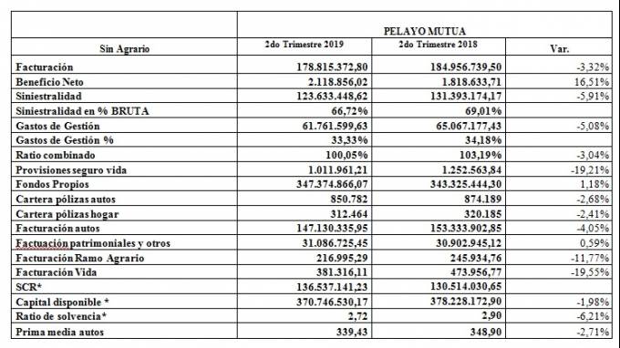 La facturación de la compañía a 30 de junio de 2019, se ha situado en 178,8 millones de euros, con un ligero descenso de un 3,3% respecto a 2018. La cartera total de pólizas es de 1,2 millones.