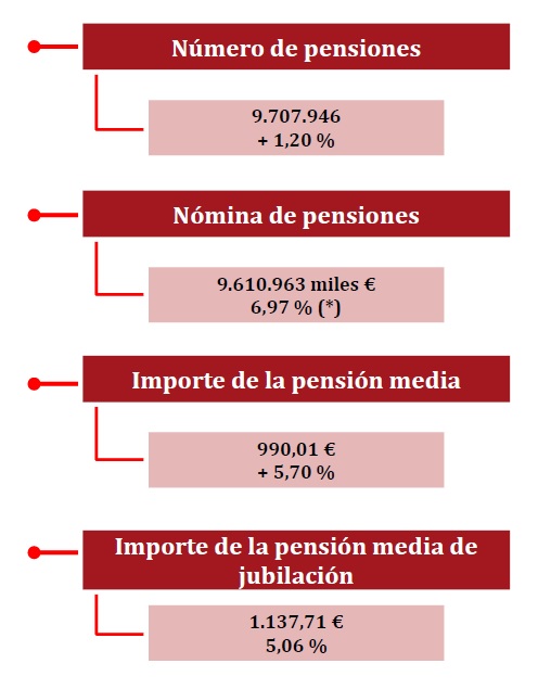 Actualmente de los 9.707.946 pensiones contributivas, un 1,20% más que en abril del año pasado. 6.014.303 son de jubilación.