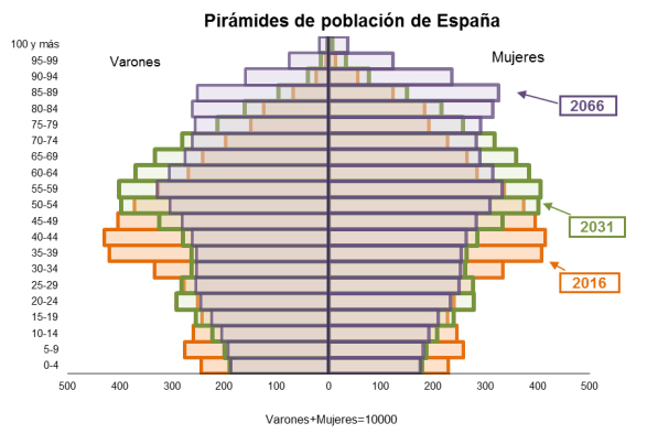 Por otra parte, los datos indican que el porcentaje de población de 65 años y más, que hoy se sitúa en el 18,7% del total, pasaría a ser del 25,6% en 2031 y alcanzaría el 34,6% en 2066.