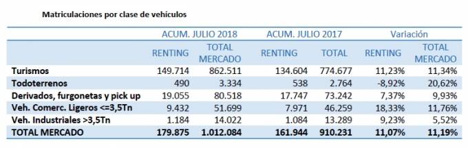 Las matriculaciones de renting acumuladas hasta julio aumentaron un 11,07%. Durante los siete primeros meses del año se han matriculado 179.875 vehículos y el peso del renting sobre el total de las matriculaciones es del 17,77%, según datos facilitados por la AER.