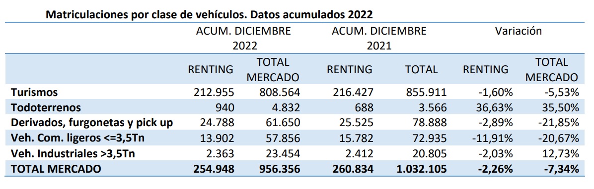 El peso del renting en el total de matriculaciones alcanzó el 26,66% en 2022
