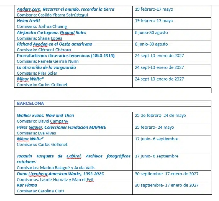 Fundación Mapfre organizará 13 muestras en sus salas de Madrid y Barcelona a lo largo de 2026.