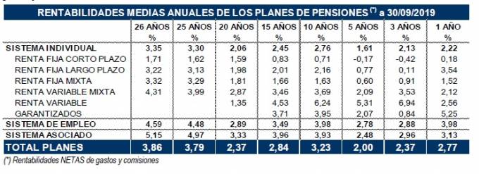 En cuanto a los activos de los Planes, su volumen alcanzó los 113.651 millones de euros, lo que supone un incremento de 1.509 millones de euros en el tercer trimestre del año y un crecimiento de 3.154 millones con respecto a septiembre de 2018 (3,5% más que en la misma fecha del año anterior).