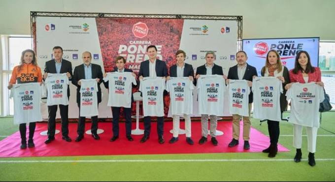 A la presentación en el Estadio Vallehermoso también acuderon Javier Bardají, consejero delegado de Atresmedia; Alberto Tomé, viceconsejero de Deportes de la Comunidad Madrid; Josep Alfonso Caro, presidente del Centro de Estudios y Opinión Ponle Freno-AXA; y Manu Sánchez, embajador de la carrera y moderador del acto, que ha anunciado, además, que la gran Carrera Ponle Freno de Madrid contará con la música de Kiko Veneno y Juan Zelada.