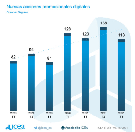 El número de acciones promocionales realizadas por las compañías de seguros en sus propios medios digitales registraron un crecimiento del 46% hasta septiembre en relación al año anterior, según los datos aportados por ICEA a través del 'Observatorio Comercial'.