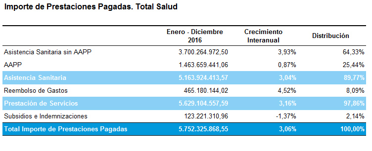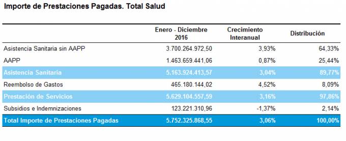 Las prestaciones pagadas por el seguro de Salud en 2016 alcanzaron los 5.752 millones de euros, con un crecimiento del