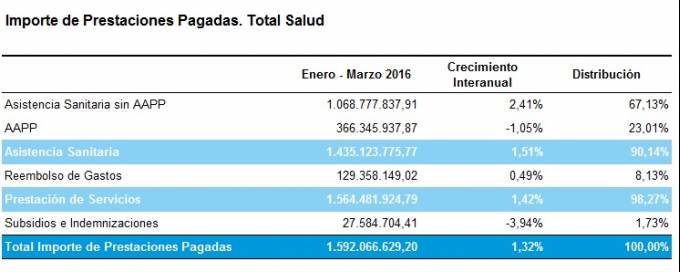 Las prestaciones pagadas por el seguro de Salud crecen un 1,32% en el primer trimestre