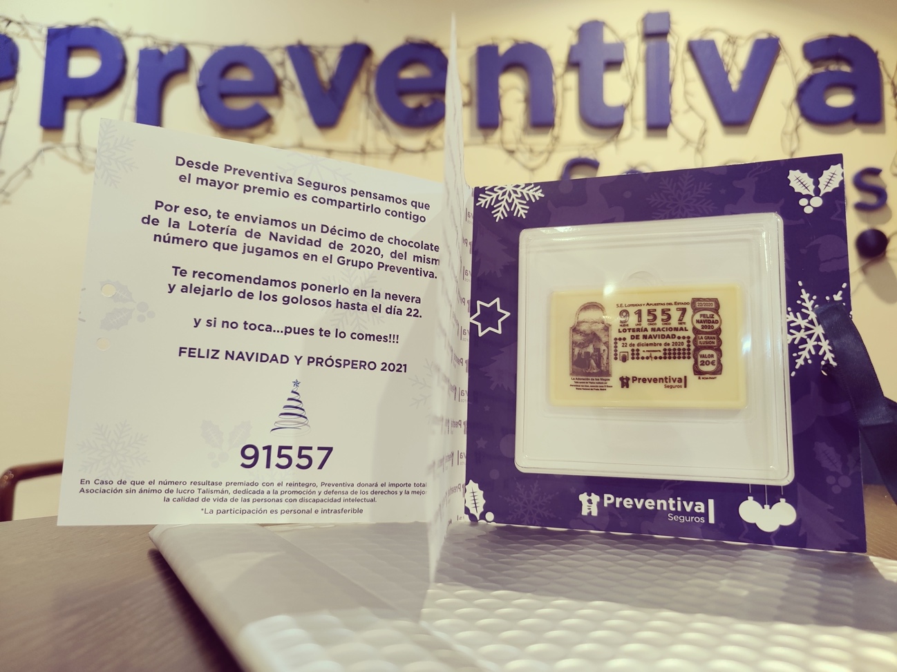 El número de la lotería de Navidad con el que Preventiva Seguros ha obsequiado a proveedores y colaboradores ha sido agraciado con el reintegro -20 euros por décimo-.