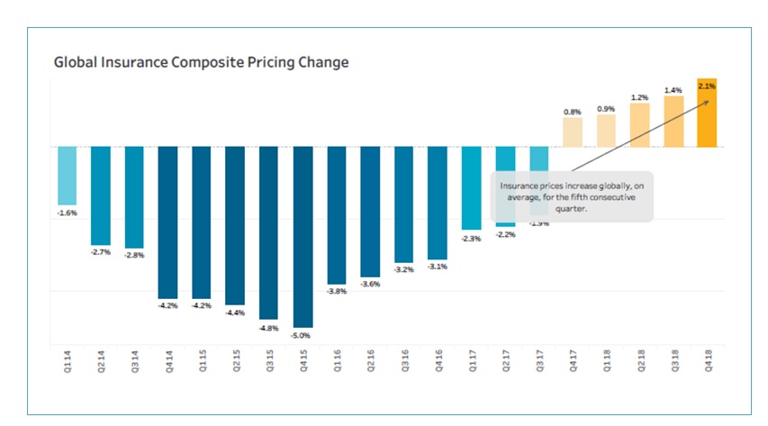 Las primas de seguros mundiales suben un 2% en el 4º trimestre de 2018