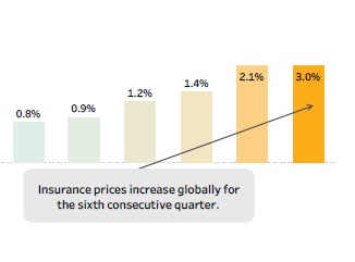 El precio aumentó en todas las regiones del mundo por segundo trimestre consecutivo, impulsado por un cambio en las tasas de seguros de Daños Materiales y de D&O.