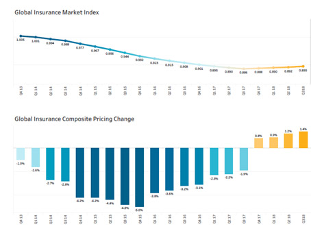 El Informe del Mercado Global de Seguros de Marsh destaca que las tasas de prima de los seguros han crecido por cuatro trimestre consecutivo a nivel global en el tercer trimestre del año. Este informe, que recoge un análisis de los principales mercados del mundo, estima que el crecimiento estuvo por encima del 1% en el tercer trimestre gracias al aumento de los seguros de Daños y de Líneas Financieras y Profesionales. Señala también que los precios subieron ligeramente, aunque en general el mercado se mantuvo estable en la mayoría de líneas de productos y geografías.