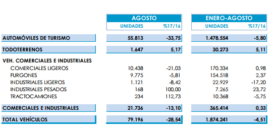 En los ocho primeros meses del año, se han fabricado en nuestro país un total de 1.874.241 vehículos, lo que significa un 4,5% menos respecto al mismo periodo del ejercicio 2016, según datos facilitados por Anfac.