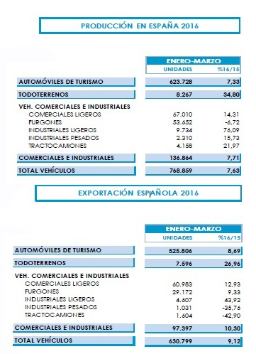Según informa Anfac, la producción de vehículos en España finaliza el primer trimestre del año con “resultados excepcionales”. El crecimiento es del 7,6% y se han fabricado más de 12.600 vehículos al día, con un acumulado total de 768.859 unidades.