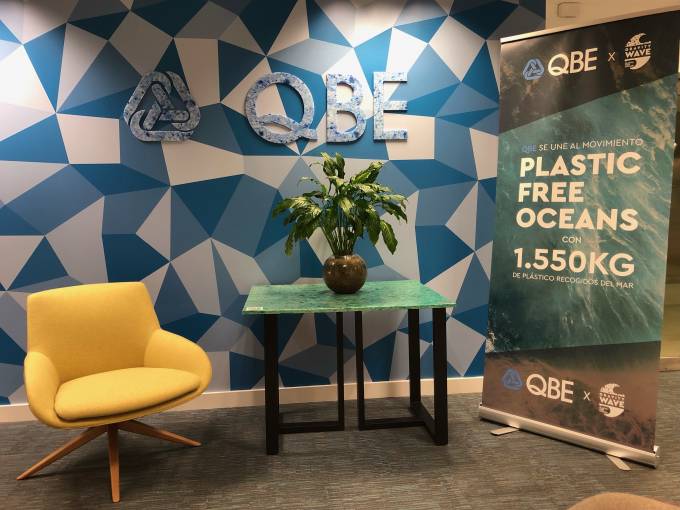La aseguradora ha colocado una muestra en sus oficinas, como resultado de esta colaboración, representada por el logo de QBE realizado con material de botellas de plástico. Asimismo, parte del plástico recogido se ha utilizado parar fabricar la encimera de una mesa realizada a partir de redes de pesca.